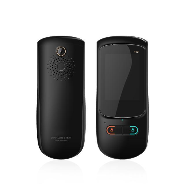云集智能F02智能翻译机是一款集AI翻译、一键人工翻译、录音翻译、离线翻译、语音翻译的人工智能语音产品。作为一款能够随时拿出手的电子产品,颜值是第一位。简约大方的设计风格,以黑白色调为主,呈现产品的高科技视觉感。外观酷似智能手机,拿在手里大小合适。