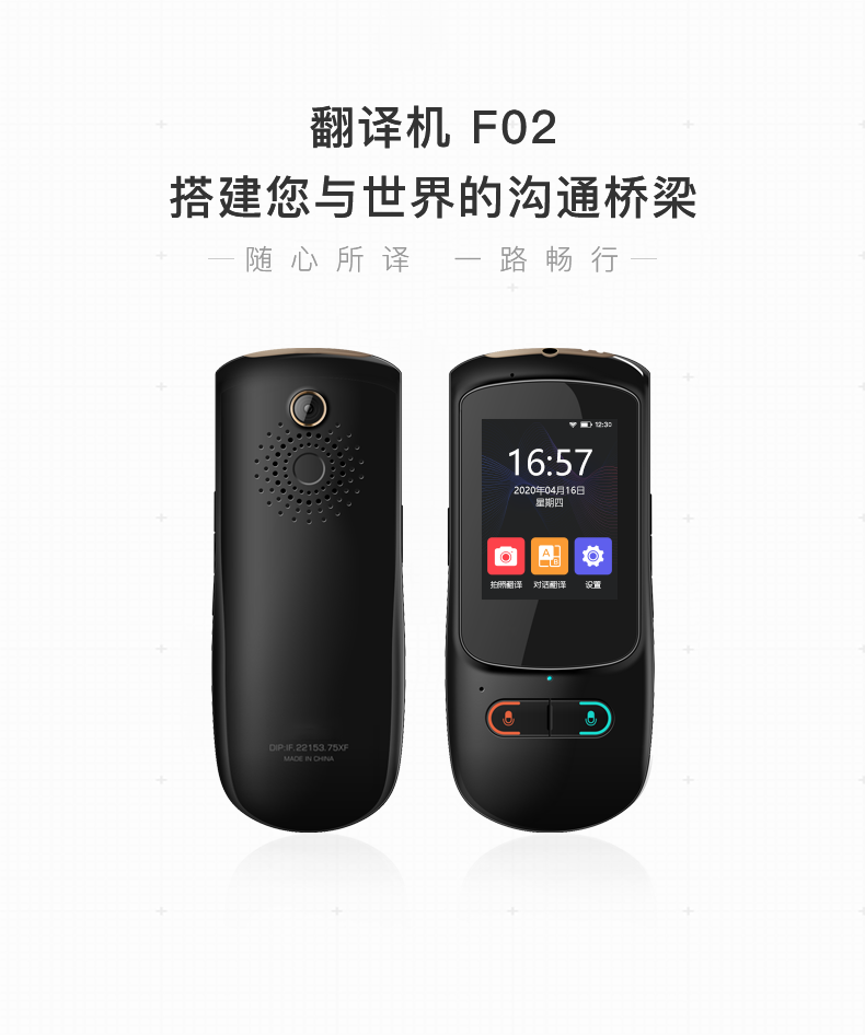 云集智能F02翻译机支持106种语言实时互译,支持上百个国家和地区,最大限度的覆盖落地免签语言国家。世界这么大,谁不想去看看?随身携带翻译机,出国在外轻松实现外语自然“聊天”。翻译精准,其翻译水平可以与专业的翻译员进行媲美,专业的8级翻译水平。支持拍照翻译、对话翻译。500万高清拍照像素,即拍即译。