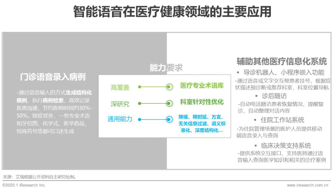 医疗领域对于智能语音的需求主要来自电子病历系统上的语音功能,通过语音输入的方式生成结构化病例、执行病例检索,节约医师输入病历的时间,解决方案一般包括ASR/NLU技术和专用医疗麦克风。此外,出国在外最怕的就是生病。如果语言不通,就很难向医生说明自己的实际情况。疫情期间,为防止病毒传播,智能语音技术在医疗领域的应用是可圈可点的。