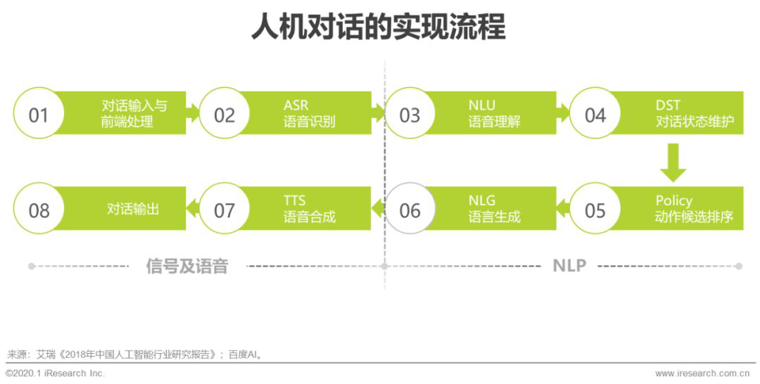 智能语音对话目前已经成为人工智能最具挑战也是最具前景的技术领域。智能语音实现人与机器交流互通的纽带。人类大脑皮层每天处理的信息中,声音信息占20%,它是沟通最重要的纽带,人机对话将方便人们的工作与生活。完整的人机对话包括声音信号的前端处理、将声音转为文字供机器处理、在机器生成语言之后,用语音合成技术将文本语言转化为声波,从而形成完整的人机语音交互。